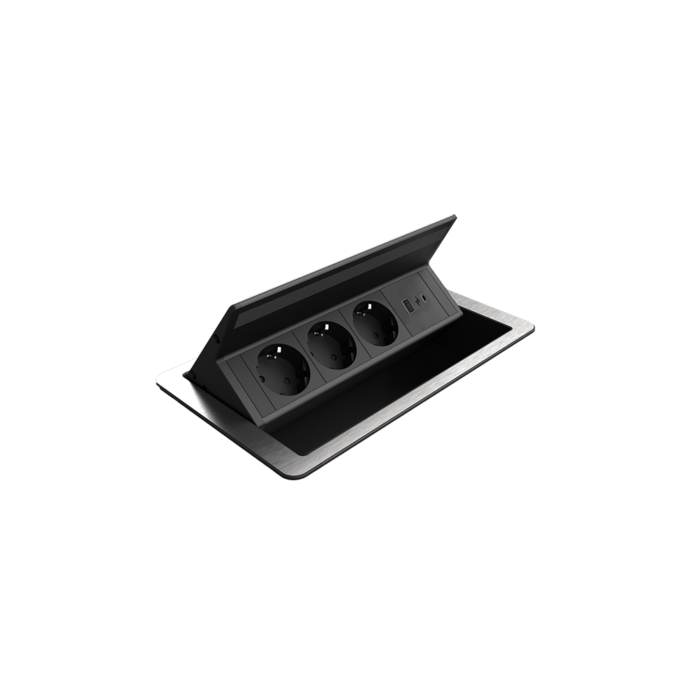 STAND UP 2xSHUKO SOCKET+1xUSB A/C 20W, BLACK/INOX