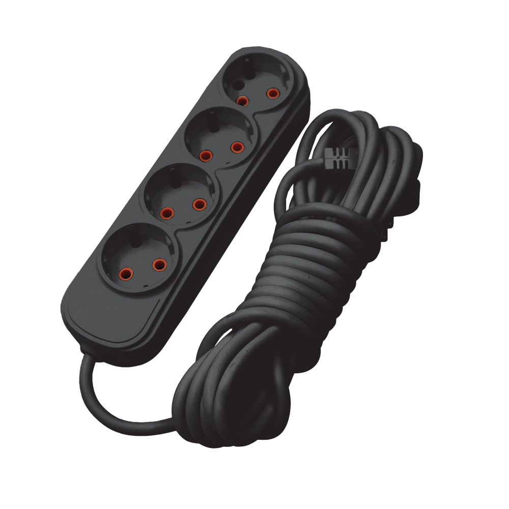 MULTIPLUG FOURFOLD 2M H05VV-F 3G1.5MM2, BLACK